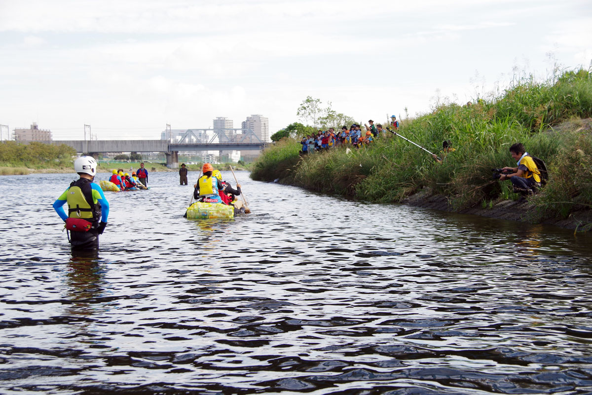 イカダには、フロンターレ選手が同乗し、ファンと一緒に操船する。選手もファンも、最初は初めて乗船するイカダに不安げだったが、慣れれば沈することなく安定して下流まで漕ぎ着ことができた。選手と一緒に乗ることのできたファンは、一生の思い出になったのではないだろうか。