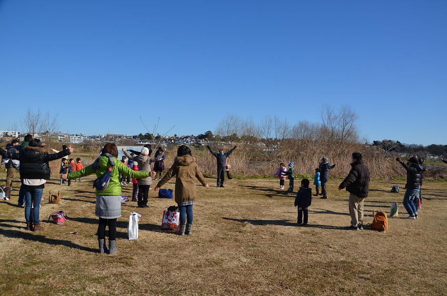 2015年、とどろき水辺の楽校最初のイベントは、『凧揚げ・昔遊び・雑煮』だ。