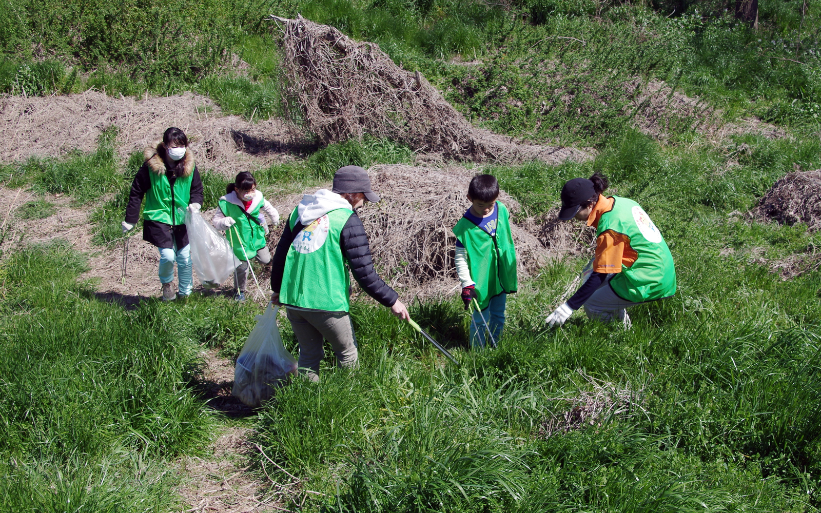 開会式を終えると、ゴミ袋、トングを受け取り川岸へ移動し清掃活動を開始した。スタッフの案内で川岸へ移動した参加者は積極的にゴミを拾ってくれた。