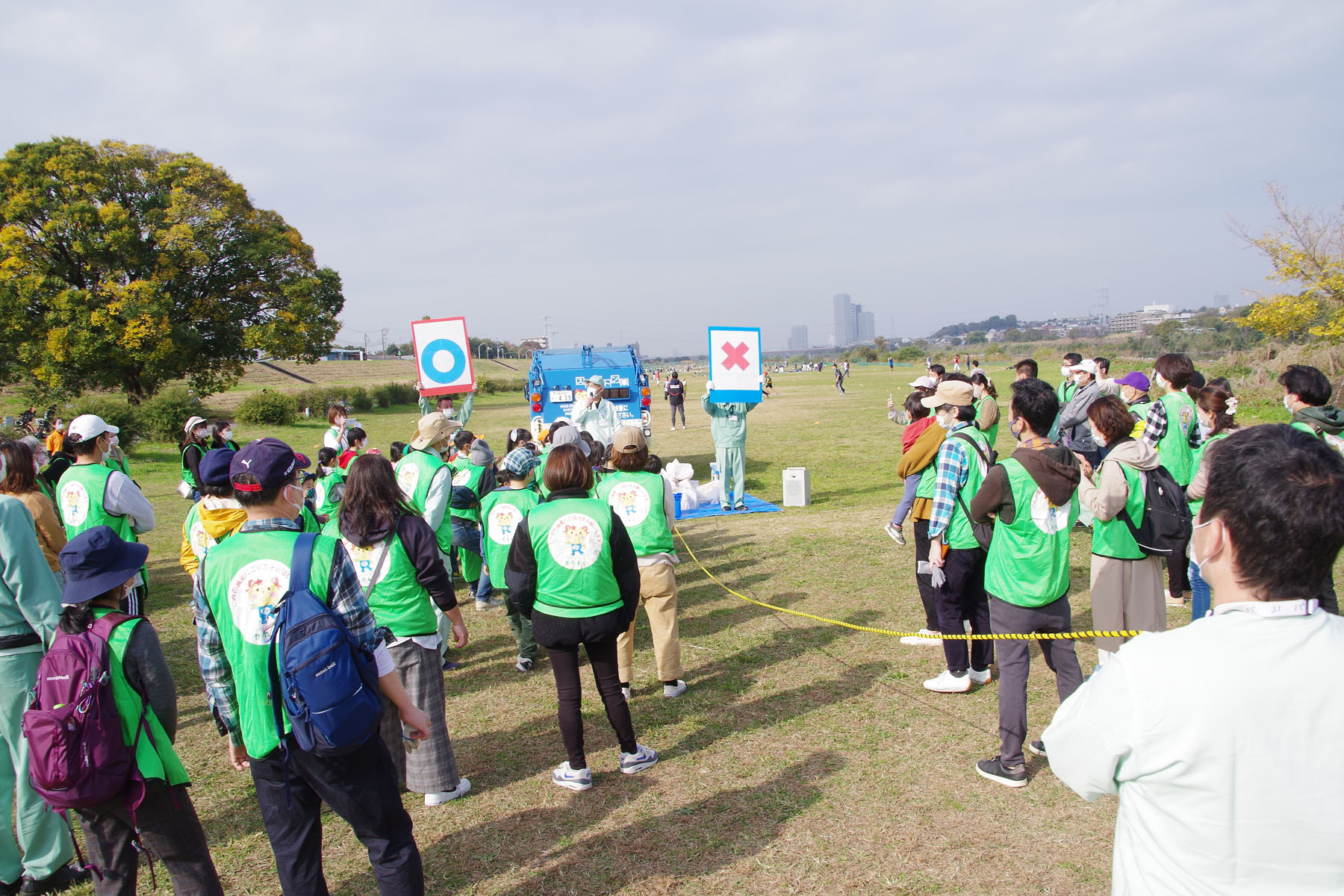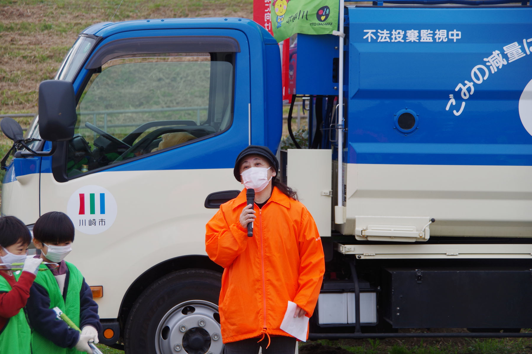 清掃活動を終えると、川崎市中原生活環境事業所の皆様によって、ゴミ収集車の実演講習とクイズ大会が開催された。
